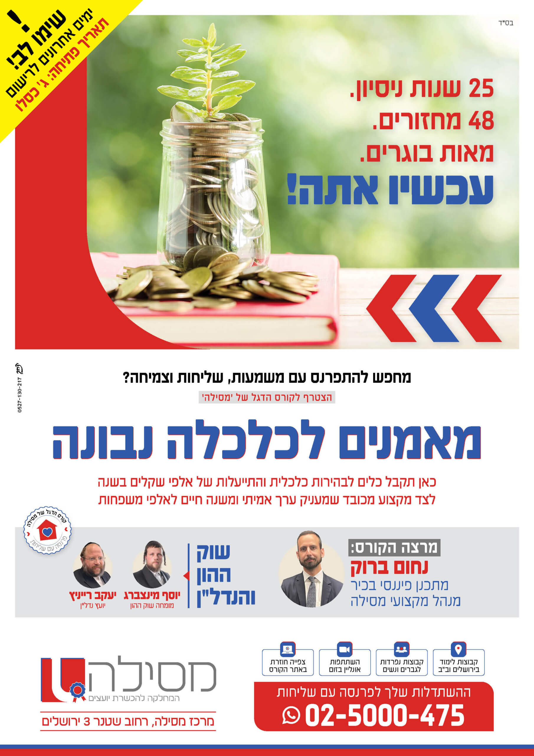 במסילה אנחנו מאמינים שידע טוב צריך להתפשט. לכן פיתחנו תוכניות הכשרה מקצועיות ומעמיקות שיעניקו לכם את הכלים לעזור לאחרים למצוא את הדרך לחיים כלכליים טובים ומאוזנים.