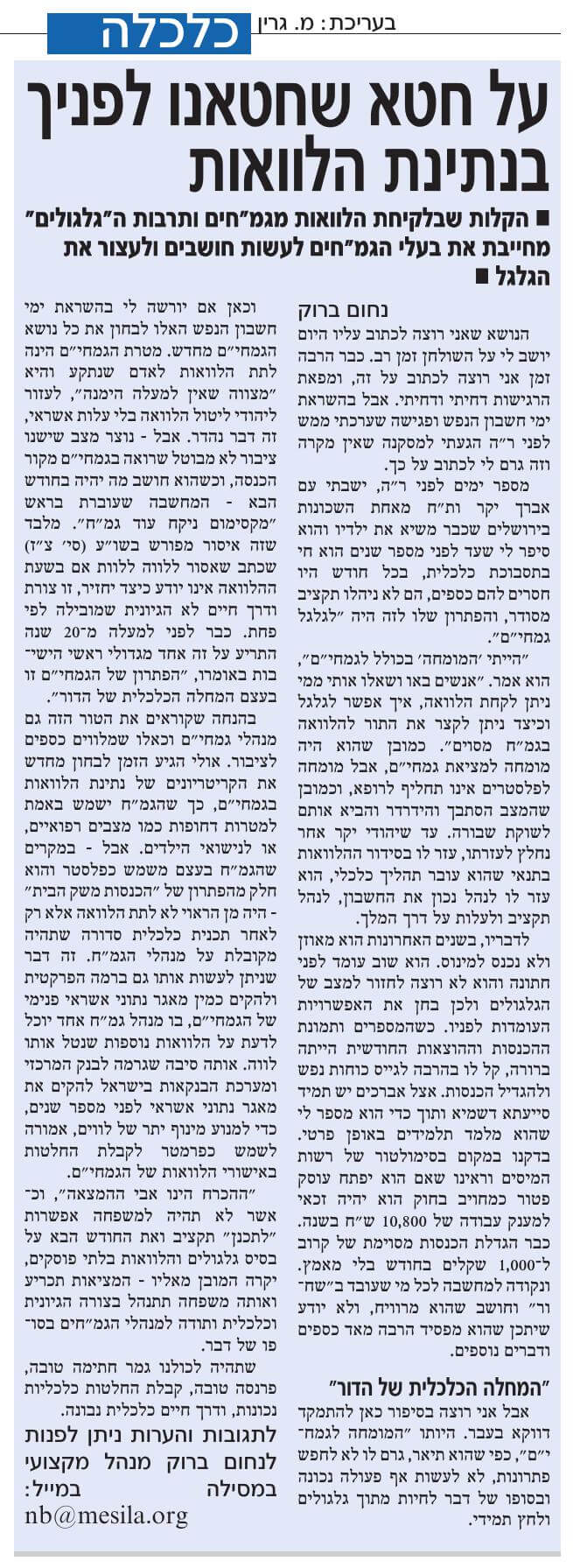 אתם צריכים תהליך כלכלי מסודר שמסיים את הגלגולים ומעלה אתכם על דרך המלך.